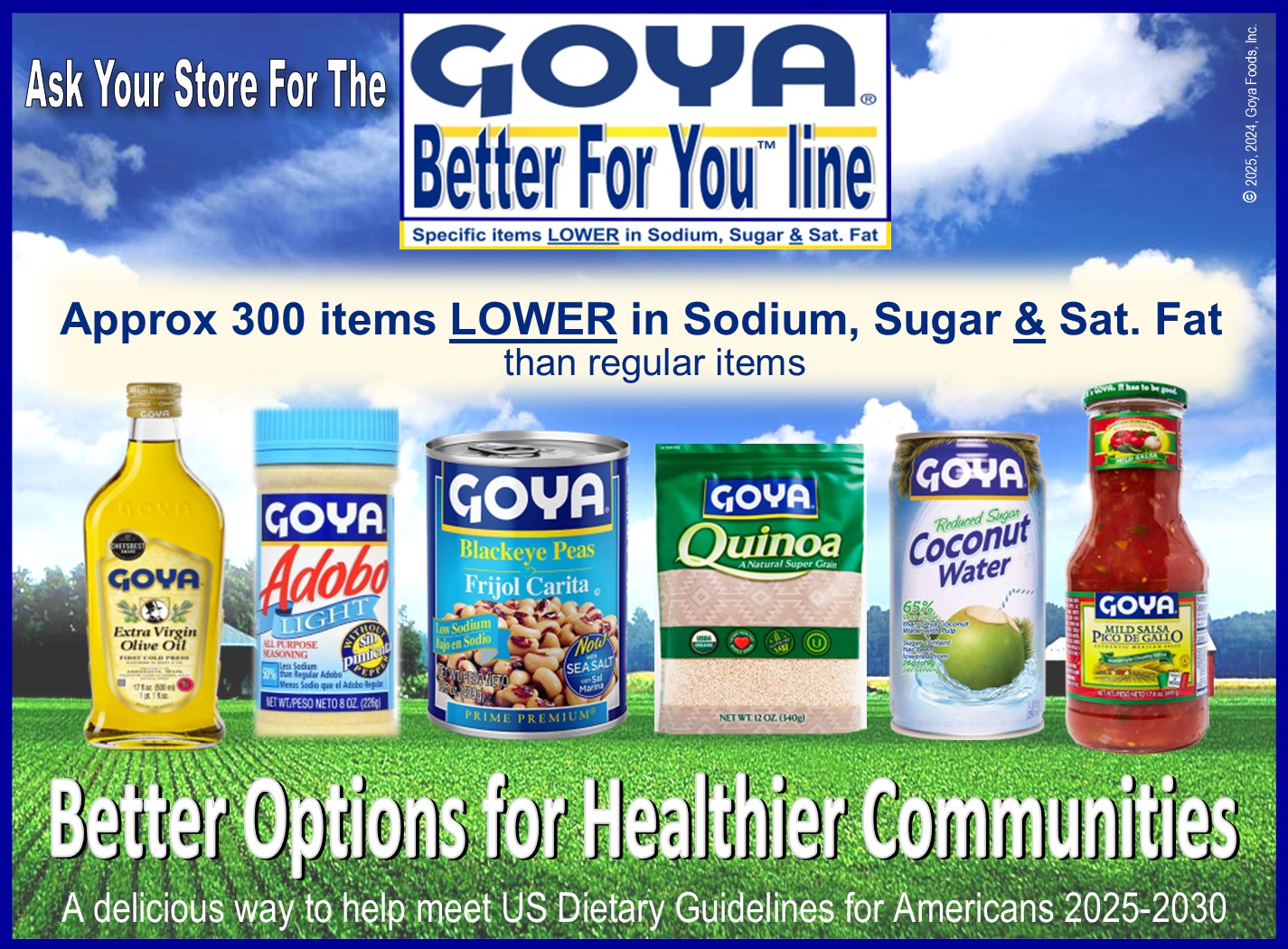 Visit the Goya Foods Pavilion and taste some of the Goya Better For You products featuring great tasting foods low in sodium, sugar and saturated fat than regular to help deliciously align with the U.S. Dietary Guidelines, and health organizations like the American Heart Association.
